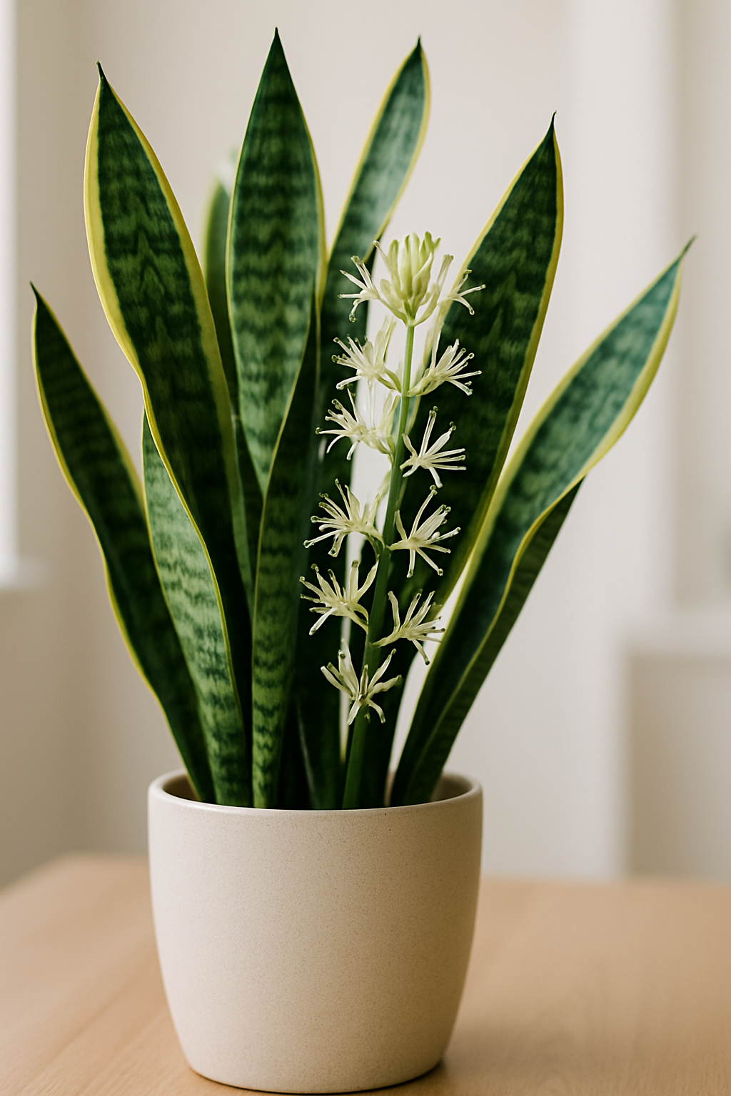 Toutes les variétés n’ont pas la même facilité de floraison. Sansevieria laurentii et trifasciata fleurissent plus en appartement, tandis que les formes cylindriques restent plus timides.